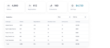 Performance StatisticsTrack clicks, registrations, and earnings with clear, real-time reporting.