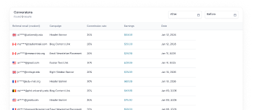 Conversion TrackingSee every approved sale and commission directly inside your affiliate panel.